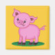 Este pequeno e bonito porco rosa fica em pé num pedaço de grama e sorri para seu novo dono, você.