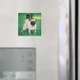 Dieta! Não coma tudo na geladeira! O pequeno cachorro está lá para lembrá-lo.