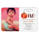 belo convite para o primeiro aniversário da abóbora, com fotografia do bebê e uma adorável abóbora de aquarela pintada à mão, design simples e elegante para a família moderna