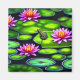 Um Sapo giro e divertido que repousa em lindas almofadas de lírios coloridas.