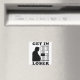 Imagem engraçada do refrigerador de presentes político para frigoríficos de garagem na caverna do homem progressista. Gráfico negro de um portátil e corrupto Donald J Trump indo para a prisão por todos os seus crimes. "Entra em perdedor".