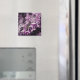 A abundância de flores lilás na foto neste ímã nos convida a explorar as profundidades de suas cores e formas moles, algumas abertas e algumas ainda não totalmente abertas, algumas à luz e outras às sombras.