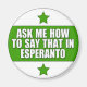 Mostre sua fluência no idioma internacional com este design espirituoso. O steloj de verdaj adiciona um bom toque. Pergunte-me como dizer isso em esperanto.