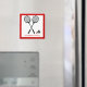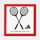 Bastões de Badminton, raquete e imã personalizada de shuttlecock que exibe um ícone preto minimalista de duas raquetes de badminton, um vaivém e uma borda vermelha ao redor. Este design é um modelo e é completamente personalizável. Personalize-o e altere o texto com monograma, nome ou mensagem.