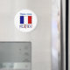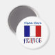 O ímã redondo personalizado tem a bandeira francesa, com a palavra FRANCE, em letras coloridas com o tricolor francês. Acima é um lugar para o seu nome, em letras azuis, ou de outra pessoa, para que você possa criar um presente personalizado ou um olhar personalizado. Excelente estocante. Diversão para favores ou lembranças de reuniões familiares, viagem ou clubes.