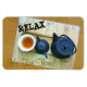 É simples personalizar este ímã retangular flexível de 4" x 6" com uma fotografia estática de uma xícara de chá, pote de chá e pote de água quente em uma bandeja retangular de madeira. Esta configuração de chá é colocada numa mesa de madeira bem vestida. A fotografia é colocada dentro de uma grande margem de canela espiralada e russa e a imagem está ancorada no ímã. Preencha os campos modelo com suas palavras, remova o texto ou clique em personalizar para selecionar um estilo de fonte, tamanho e cor que você preferir.