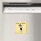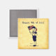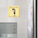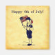 Um imã personalizado com letras retrorreflectoras lendo Happy 4 de julho e um desenho vintage de um garoto patriótico segurando fogos de artifício vermelhos e uma antiga bandeira dos EUA em um fundo falso de pergaminho.
