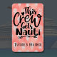 Marque veleja por aventura e deixe todos saberem que está pronto para se divertir com este ímã de porta de cruzeiro personalizado! Este ímã atraente apresenta a frase brincalhona "Esta Tripulação ganha Nauti" em uma letra negrito e náutica. Torne-o seu próprio adicionando uma mensagem personalizada abaixo, como o seu nome, o nome do grupo ou apelidos. Este toque pessoal permite que todos saibam quem está atrás da porta e adiciona um toque único à sua cabine. Além disso, é amovível e reutilizável, fazer perfeito para futuros cruzeiros! Mostre sua divertida tripulação e adicione um toque de personalidade à sua cabine com este ímã personalizado de porta de cruzeiro. Por favor, note: nem todas as portas da nave são magnéticas. Não podemos garantir que sua porta será magnética. Por favor, verifique com seu agente de viagem, a linha de cruzeiro ou através de fóruns.