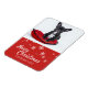 Um magnata fotográfico de Natal, personalizável, com um cachorrinho francês. Você pode personalizar o ímã com sua foto favorita de estimação ou deixar esta foto. Feliz desejo de Natal está na escrita moderna. Personalize o ímã com o seu nome e o nome do seu cão. A carta está em cor vermelha e branca com belos flocos de neve. presente de Natal excelente para a sua família e amigos.