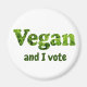 Mostre seu orgulho vegano e vote seu estilo de vida e seus valores. Proclamem o seu ativismo vegano na promoção de uma dieta sem animais e outras escolhas saudáveis para políticos e outros eleitores nesta temporada eleitoral. Certifique-se de que as suas questões são abordadas por funcionários eleitos, informando-os sobre a sua posição política e pessoal. Você pode personalizar este produto mudando facilmente a linha de etiqueta "e eu voto" para fazê-lo dizer o que quiser. Basta usar o recurso personalizar. Se você quiser ir mais longe, como mudar a cor da fonte ou do plano de fundo, adicionar mais linhas de texto ou o logotipo da sua organização, etc., você terá toda a liberdade ao personalizar o produto.