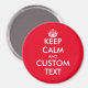 Mantenha calma e carregar na imã de geladeira redonda grande. Crie sua própria paródia engraçada. Modelo de tipografia moderna com grande coroa. Todas as cores personalizáveis. Exemplo vermelho e branco. Ideias personalizadas de presente de aniversário para amigos, família, colega de trabalho, funcionários, convidados, clientes, clientes etc.