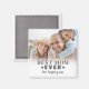 This personalized square photo magnet makes a sweet and meaningful keepsake, featuring your photo centered on the front with a soft white gradient overlay for a clean, polished look. The text “Best Mom Ever” appears over the photo in a mix of bold serif fonts, with a small heart on each side of the word “Ever” for a simple, cute detail. Below, there’s space to add a short custom message, name, or year in a soft handwritten script.