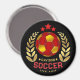 This round magnet is designed to add both personality and visual impact to refrigerators, lockers, and other metal surfaces. It features a bold central ball pattern in rich red and yellow tones, framed by elegant gold laurel branches and accented with star elements for a classic achievement-inspired look. The deep black background enhances contrast and makes the artwork stand out clearly. The magnet offers a customizable text area, allowing it to be personalized for individuals or teams, making it a thoughtful keepsake that combines decorative style with everyday practicality.