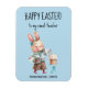 This is a Happy Easter Flexible Magnet decorated with a whimsical Easter bunny decorating a cake. Easily change "teacher" to any other recipient, and name, using the Template provided. Water and stain resistant. Choose 3" x 4" (shown) or 4" x 6". See "About This Product" at side for additional information.