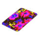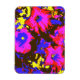 Um vibrante design azul, roxo, vermelho, amarelo e preto pop de petúnias.