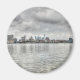 Aqui está a bela linha do horizonte de Filadélfia, vista do outro lado do rio Delaware, cidade de Camden. As nuvens se pendura no céu tempestuoso, e as reflexões dos arranha-céus são vistas na água.