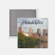 Esta é a bela linha do horizonte da cidade de Filadélfia, tirada de uma ponte que atravessa o rio Schuylkill. A arquitetura dos arranha-céus e edifícios de Filadélfia estão expostos nesta foto. Center City, a área centro de Filadélfia, é o foco desta fotografia. Bonito nuvens penduram no céu de verão.