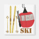 Esqui alpino moderno, esqui, design de esquiadores com esquis de ouro e polos de ouro. Simples ilustração de esqui de ouro festivo para amantes de esqui.