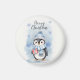 Uma ilustração encantadora de inverno de um adorável pinguim vestindo um chapéu e cachecol listrados, trazendo uma vibração acolhedora e festiva. Os flocos de neve suaves e tons azuis suaves no fundo criam uma atmosfera mágica de inverno. Perfeito para cartões de Natal, posters, adesivos e artesanatos sazonais!