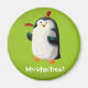 Pinguim bonito e bigode no palito. Pinguim preto e branco com cabana vermelha e bigode falso no bastão. Ele é um pássaro hilário pronto para a festa. O tema do partido é claro: bigodes! Esta é a sua fantasia, simples mas eficaz. Este bigode falso lhe dará o primeiro preço para os melhores homens da noite.