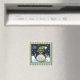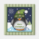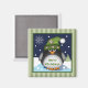 Este ímã tem um design com um pinguim fofo vestindo-o com flocos de neve decorados de chapéu numa noite de neve bolinhas. O quadro tem faixas de tendência em tons verdes. O texto sobre este produto "Feliz Natal" é um objeto modelo e pode ser mudado para qualquer texto facilmente.