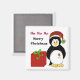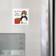 Um design de Natal divertido com um pinguim legal num chapéu de santa com um grande pacote vermelho ao seu lado. Ho, Ho, Ho, Feliz Natal é a mensagem.