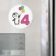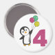 O pinguim com balões para o quarto aniversário. Para cada criança que completar quatro anos. Pinguins bonitos para o 4º aniversário das crianças.