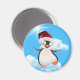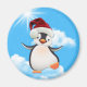 Imã Pinguim voador feliz vestindo um chapéu de Papai n