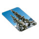 Pinheiros sob a neve sobre o céu azul e os fundos das montanhas na Rua Moritz, Suiça