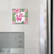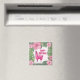 Pink Happy Smiling Lama, este design apresenta um lindo e adorável Lama Feliz Smiling Rosa rodeado por palmeiras verdes e flores tropicais cor-de-rosa.