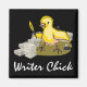 Todo pintinho de escritores sabe como é estar rodeado por pilhas de papel vazio. Aplique uma tinta com uma pena de pena, e a magia começa. Faz um presente perfeito para o seu melhor pintinho. Este design amarelo agudo é adequado para fundos pretos e escuros.