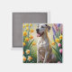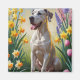 Um cão alegre senta-se pacificamente sobre a relva verde-luxuosa, rodeado por primavera coloridas floridas sob um céu azul macio. Esta pintura digital de óleo captura um momento sereno com pinceladas expressivas, cores quentes e um senso de alegria gentil.