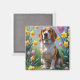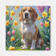 Um cão alegre senta-se pacificamente sobre a relva verde-luxuosa, rodeado por primavera coloridas floridas sob um céu azul macio. Esta pintura digital de óleo captura um momento sereno com pinceladas expressivas, cores quentes e um senso de alegria gentil.