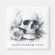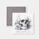 Ímã de geladeira com pintura em aquarela de uma caveira cercada por rosas e seu nome ou outro texto personalizado à direita.