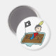 Íman pirata personalizável de figura de palito com pirata de palito numa balsa com bandeira de crânio e bósforos.