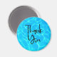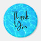 Obrigado ímã com uma fotografia de água azul clara de piscina, com reflexões brilhantes.