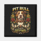 A bold ornamental illustration of a pit bull surrounded by roses and doves, symbolizing loyalty, compassion, and the misunderstood strength of the breed.