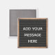 Adicione sua própria mensagem ou um nome a este ímã de geladeira. Este ímã em forma quadrada tem o aspecto de um letterboard ou de um sinal de estilo marquee em preto numa moldura de madeira com o seu texto em letras brancas.