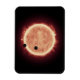 Esta ilustração mostra dois mundos do tamanho da Terra passando em frente à sua estrela anã vermelha, que é muito menor e mais fria que o nosso sol. Os planetas, TRAPPIST-1b e TRAPPIST-1c, residem a 40 anos-luz de distância. Estão entre 20 e 100 vezes mais perto de sua estrela do que a Terra está do Sol.