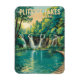 Plitvice Lakes vector artwork design. The park's lakes are separated by natural travertine dams, which are created by water flowing in thin layers over thresholds.