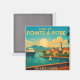 Affiche rétro illustrant le port de Pointe-à-Pitre en Guadeloupe, avec bateaux, croisière et ambiance tropicale. Un design coloré et élégant, idéal pour une déco murale, carte postale ou souvenir des Antilles françaises
