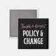 O design de magneta Pro Gun Control tem "pensamentos e orações" alinhados e substituídos por "Política e Mudança", abordando a violência sem fim contra armas nos EUA.