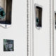 Nada mais do que um papagaio verde a gritar no suporte ferroviário do edifício. Imagem flexível do frigorifico projetada por "Polly".