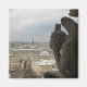 Um ímã com um gárgula ponderante olhando para a cidade das luzes no topo do seu posto em Notre Dame.