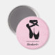 Personalize com seu nome. Ilustração de um par de calçados/chinelos de balé pretos que se posam nas pontas dos dedos, conhecidos como pontas de ponta, nos dançarinos de balés clássicos e contemporâneos. O fundo é rosa com pequenas bolinhas brancas.