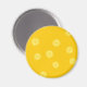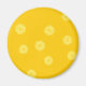Esses itens são impressos com um gráfico animado de formas estilizadas de citros em um tom ensolarado de amarelo.