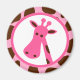 Uma girafa rosa e castanha é perfeita para o amante da girafa e é a design perfeita para chás de fraldas de girafa com o tema "É uma Garota"! Design apresenta um fundo cor-de-rosa com manchas girafas marrons. No centro há um círculo branco com uma forma rosa e uma cabeça de girafa rosa e marrom. Este design bonito é o favor perfeito para o chá de fraldas e está disponível em um convite para o chá de fraldas também!