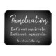 Pontuação Engraçado Magnet. Vamos coma esquilos, texto branco no quadro. Um ímã humorístico para professores, autores, escritores, blogueiros, editores, editores, poetas, índias e outras pessoas de livros. Excelente de livrarias, compras de café, feiras de livros, eventos de autores e oficinas, salas de aula, retiros de escritores, brindes e muito mais. O texto, as fontes e as cores podem ser personalizados por você com as ferramentas fornecidas no menu de personalização do Zazzle. Visite nossa loja, Bookles, para descobrir nossa crescente variedade de produtos, e entre em contato conosco se precisar de assistência.
