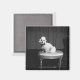 Poodle branca sentado nas fezes (B&W). Copyright: George Marks
