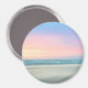 Fotoímã redondo com um pôr do sol abstrato sobre o Mar do Norte e a areia sopradora na praia de Kijkduin, em Haia, na costa oeste dos Países Baixos. Imagem relaxante do excelente relembrando o verão, férias e Ibiza.